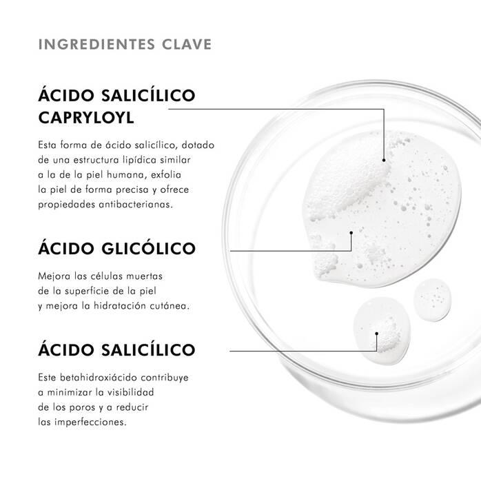 Limpiador exfoliante en espuma con ácido salicílico para desobstruir los poros y reducir el exceso de sebo.
