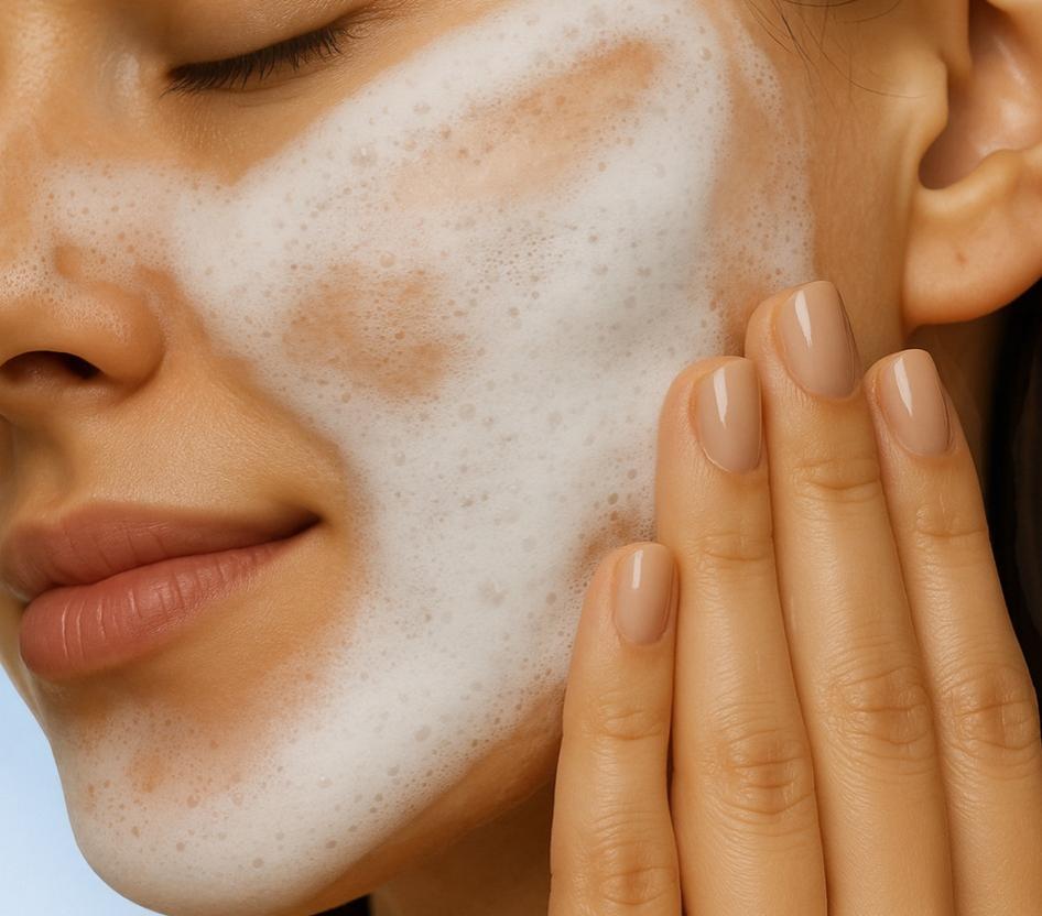 Aplicar dos pulsaciones de espuma sobre la piel previamente humedecida.