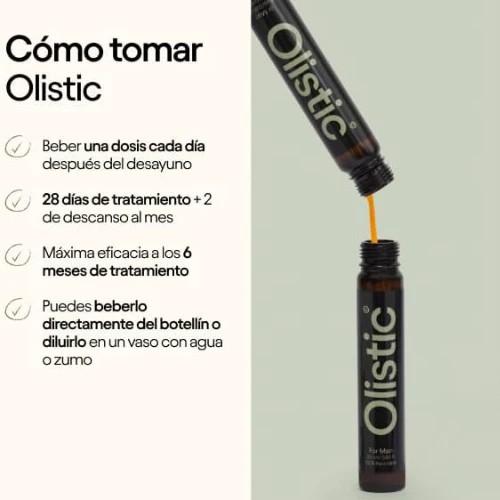 - Para una mejor absorción y tolerancia, especialmente si tienes el estómago sensible, se sugiere tomar Olistic justo después del desayuno o del almuerzo.