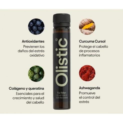 Olistic Men es un complemento nutricional diseñado para fortalecer y nutrir el cabello masculino, así como para combatir la caída del mismo. Está recomendado para todas las personas mayores de 18 años que deseen mejorar la salud y belleza de su cabello. Siempre aconsejamos consultar a un dermatólogo antes de comenzar el tratamiento, especialmente si se tienen condiciones médicas preexistentes.