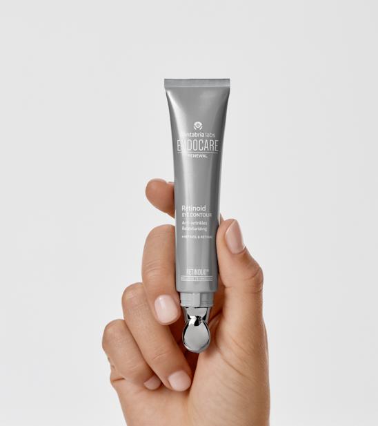 Formulado con la nueva tecnología RetinDuo®, (compuesta por dos retinoides: retinol puro encapsulado en microesponjas y retinal en nanovesículas y un booster con ingredientes de origen natural), cafeina y péptidos reduce visiblemente las arrugas del contorno de ojos mejorando así su apariencia y luminosidad, para una mirada rejuvenecida.